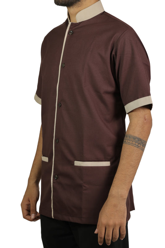 Dark Brown Housekeeping Shirt Chinese Collar